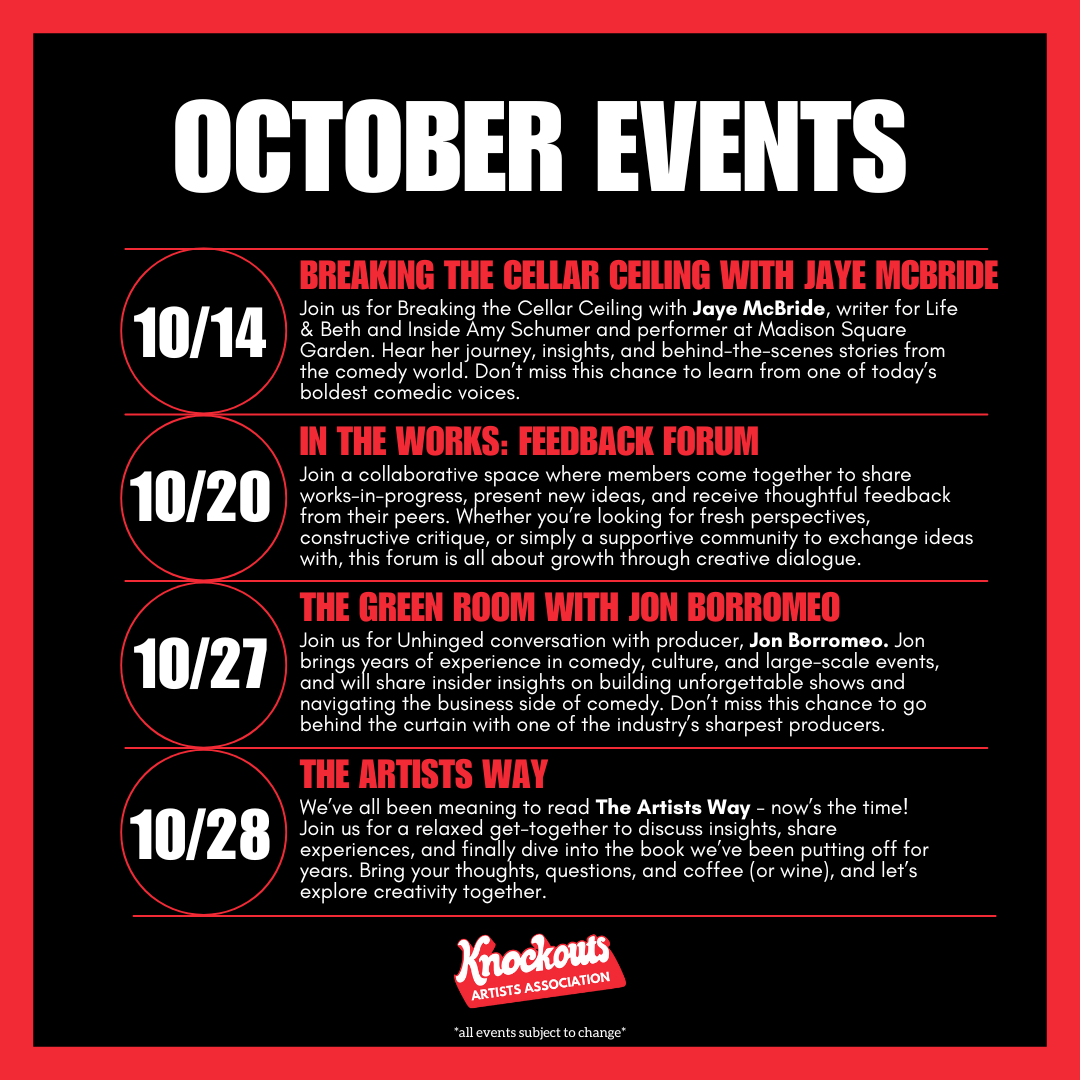The following are our upcoming events. Members will receive RSVP links via email each month. To experience one of our events prior to applying for membership, submit your request here.